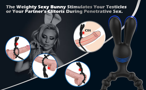 - ❤【The Weighty Sexy Bunny Stimulates Your Testicles or Your Partner's Clitoris During Penetrative Sex】- The Penis Rings with a weighty bunny hits the clitoris of your partner during penetrative sex and you can also wear it upside down to stimulate the testicles for incredible pleasure. There are various wearing combinations you can choose to find the different pleasure. For example, wearing it both on your penis and testicles or looping your penis solely - you're limited only by your imagination.