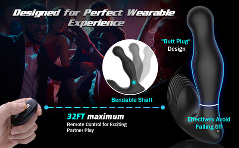 Available in 7 different finger-wiggling modes and 7 vibrations. The MAX wiggle speed up to 150 taps/min in just the right way can leave your "P-spot" breathless with pleasure! You can use it alone or with the remote control (remote control distance 32ft maximum). Just explore and discover the ultimate rhythm and the mind-blowing sweet spots for you and your partner now.