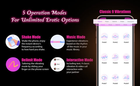The App-controlled vibrator with 5 operation modes can be connected to the phone App for unlimited pleasure options, such as synchronized stimulation with the rhythm of your favorite music, tailored vibration possibilities based on how to shake your phone or how to slide on your phone, as well as video interactive stimulation with your partner. More enjoyable combinations are waiting for you to explore.