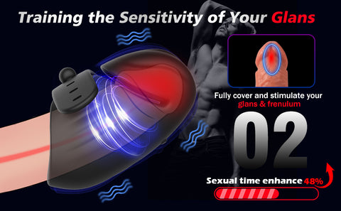 8 different vibration modes allow you to explore the most suitable sensation and intensity to achieve orgasm. 9 oval Textured design enlarges the frenulum stimulation, every inch of your glans is trained evenly. We recommend you use the gentle mode at the beginning and gradually increase the intensity of the vibration after the penis adapts.