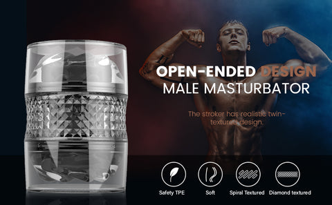 Made of TPE material, the stroker’s inner sleeve is comfortably snug and can offer dual stimulation with its spiral ribbed texture for marvelous feeling. The open-ended design allows this feeling to shuttle along with your cock. You can easily spiral along and against the texture and the climax-inducing dual crystal spiral bumps line on the chamber to drive you wild with each stroke.